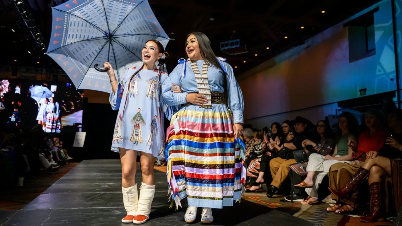 A fashion show affiliated with the century-old Santa Fe Indian Market is collaborating this year with a counterpart from Vancouver, Canada, in a spirit of Indigenous solidarity and artistic freedom. A second, independent runway show at a rail yard district in the city has nearly doubled the bustle of models, makeup and final fittings.