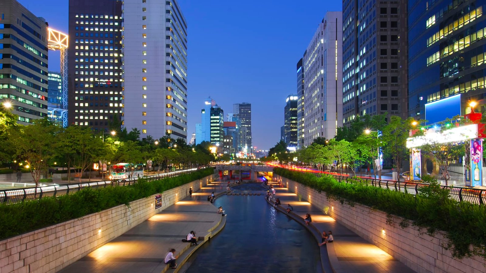 Restored Cheonggyecheon at night, Seoul.