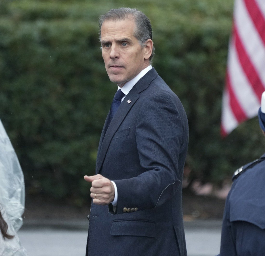 Hunter Biden looks towards United States President Joe Biden and Valerie Biden Owens while exiting the White House to board Marine One en route to Camp David.