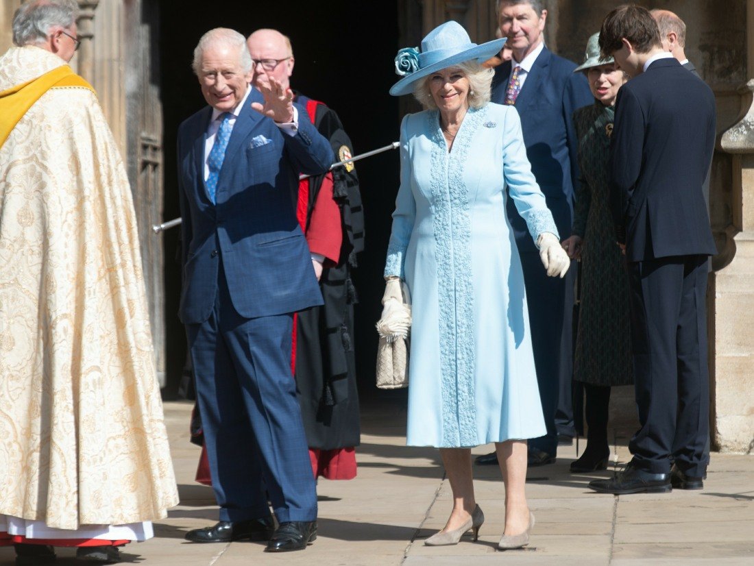 - Britain’s King Charles III and Queen Camilla wave at the crowd as they arrive for the Easter Matins Service at St. George’s Chapel, Windsor Castle, England, Sunday, April 20, 2025.,Image: 990282143, License: Rights-managed, Restrictions: Pool, *** NO UK USE FOR 48 HRS ***, Model Release: no, Credit line: Kirsty Wigglesworth/Avalon