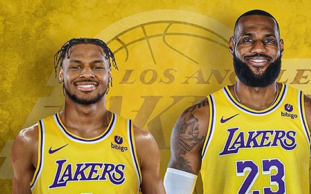 Bronny James alongside father, LeBron James in Lakers uniform. LEBRON JAMES INSTAGRAM/BLECHER REPORT