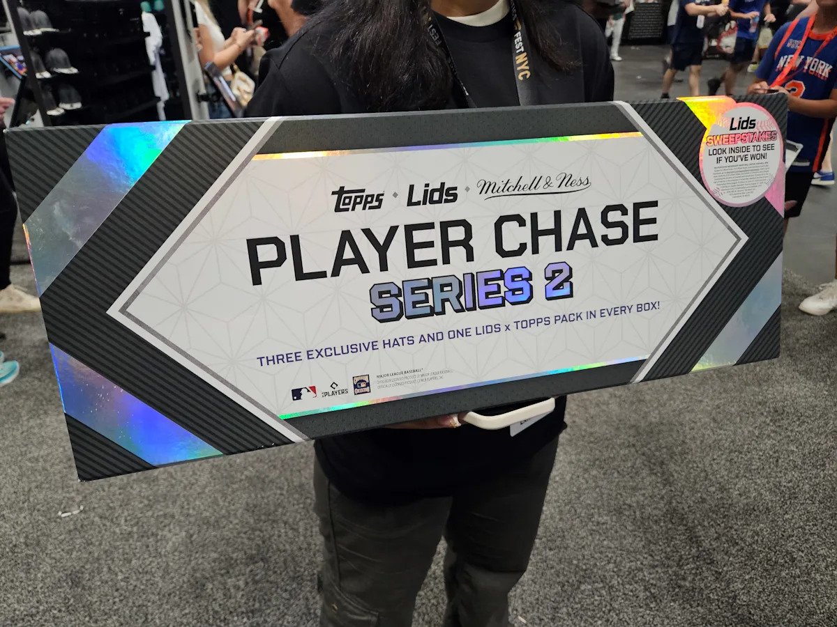 The Lids x Topps Player Chase Series 2. The boxes include three exclusive caps and a pack of Lids x Topps cards.