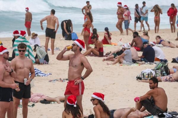 Tourists wearing Christmas hats are seen on the sand of Bondi Beach in Sydney on Dec. 25, 2025. David Gray | Afp | Getty Images Christmas celebrations were muted at Sydney’s famed Bondi Beach on Thursday in the aftermath of a terror attack that killed 15 people there more than a week ago, as the…