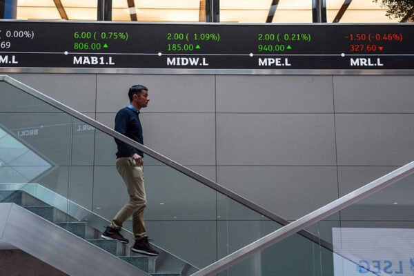 A member of staff walks beneath a trading board at the London Stock Exchange on April 25, 2025 in London, England. Carl Court | Getty Images News | Getty Images European stocks look set to open lower on Friday, as worries about an artificial intelligence bubble and the global economy shake investor confidence. Futures tied…