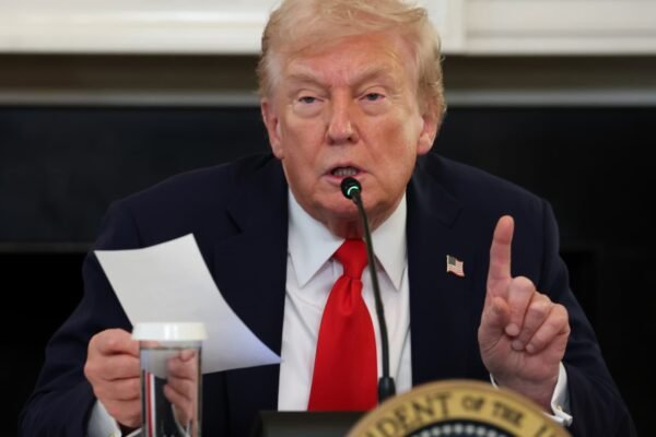 U.S. President Donald Trump gestures as he reads a note handed to him by U.S. Secretary of State Marco Rubio he said was regarding Middle East peace talks during a roundtable discussion in the State Dining Room of the White House on Oct. 8, 2025 in Washington, DC. Anna Moneymaker | Getty Images Israel and…