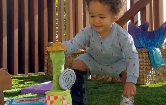 The former Sports Illustrated model shared a carousel of videos and images with the first being an adorable video of Wren playing in the yard with a black “little boot” on his foot. The mother-of-four didn’t immediately explain what happened to her son as she casually captioned the post, “Ima chicken butt!”