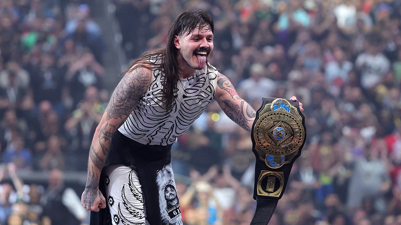 Dominik Mysterio celebrates after defeating Bron Breakker, Penta, and Finn Balor to win the WWE Intercontinental Championship during WrestleMania 41 at Allegiant Stadium on April 20, 2025 in Las Vegas, Nevada. (Ethan Miller/Getty Images)