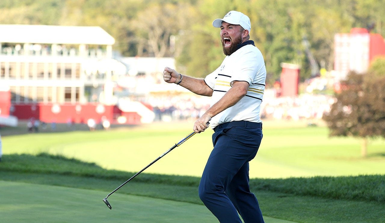 Ludvig Aberg beat Patrick Cantlay, 2 & 1, to give Europe 13.5 points, but after that, Europe did not lead any of the remaining matches. Suddenly, the United States closed their gap to just three points, but Lowry was having none of it.