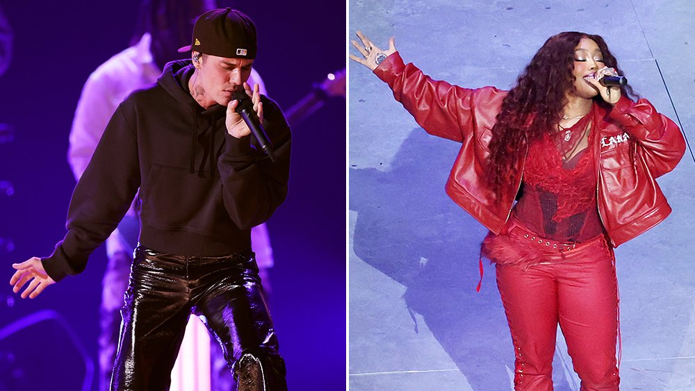 The duo effortlessly played off one another as they took turns singing the chorus of the sleeper hit toxic love-themed track, dancing and vibing as SZA threw out an effortless falsetto. The five-time Grammy-winning “Consideration” singer was seen cupping Bieber’s chin, as he then kissed her palm and hand, eventually twirling around as they moved across the stage. As the crowd continued going wild, the two wrapped up the brief performance before disappearing underneath the stage.