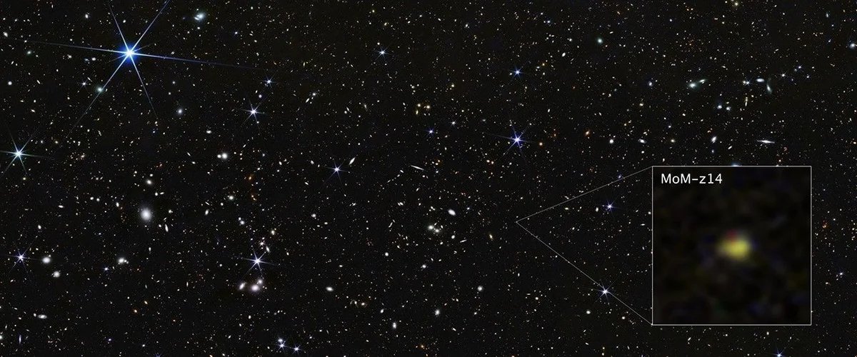 In a galaxy far, far away, there lie clues to the cosmic dawn—the first few hundreds of millions of years in our 13.8-billion-year-old universe’s early history. On Wednesday astronomers on announced that a bright galaxy called MoM-z14 that was found using NASA’s James Webb Space Telescope (JWST) is the farthest yet detected, existing just 280 million years after the big bang.
