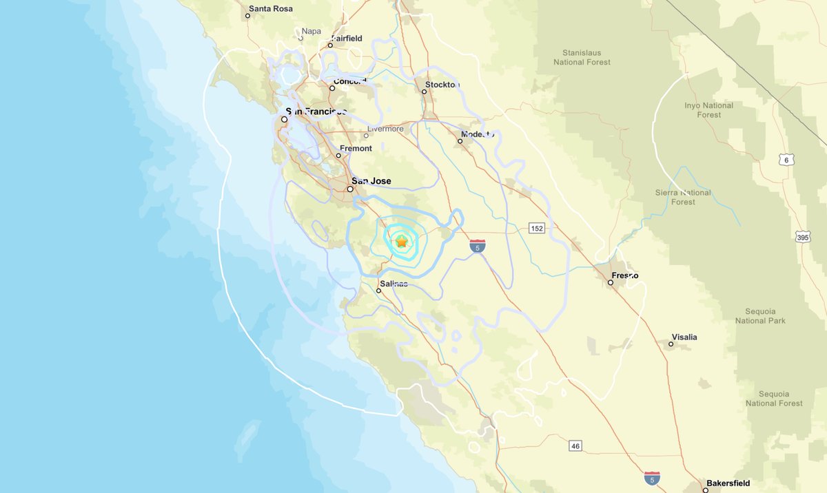 The earthquake’s epicenter was 1.7 miles deep and about five miles east of Gilroy, south of San Francisco Bay and located about halfway between San Jose and Salinas, inland from the coast. The National Tsunami Warning Center quickly determined that the event did not pose any threat of a tsunami.