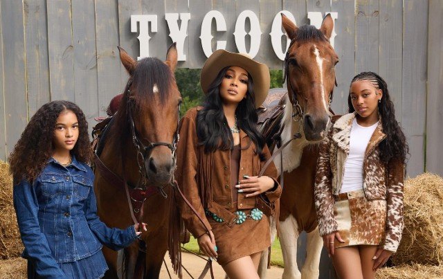 The trio embraced the night’s western theme with stylish rodeo-inspired looks with Monica and Laiyah wearing coordinating brown looks, while Shai went with a denim outfit to match the western-them vibe.
