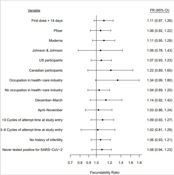 Lead author Dr. Amelia Wesselink, epidemiologist at  Boston University School of Public Health, and colleagues analyzed survey data on COVID-19 vaccination and infection, and fecundability, among female and male participants in the BUSPH-based Pregnancy Study Online (PRESTO), an ongoing NIH-funded study that enrolls women trying to conceive, and follows them from preconception through six months after delivery. Participants included 2,126 women in the US and Canada who provided information on sociodemographics, lifestyle, medical factors, and characteristics of their partners from December 2020 to September 2021, and the participants were followed in the study through November 2021.