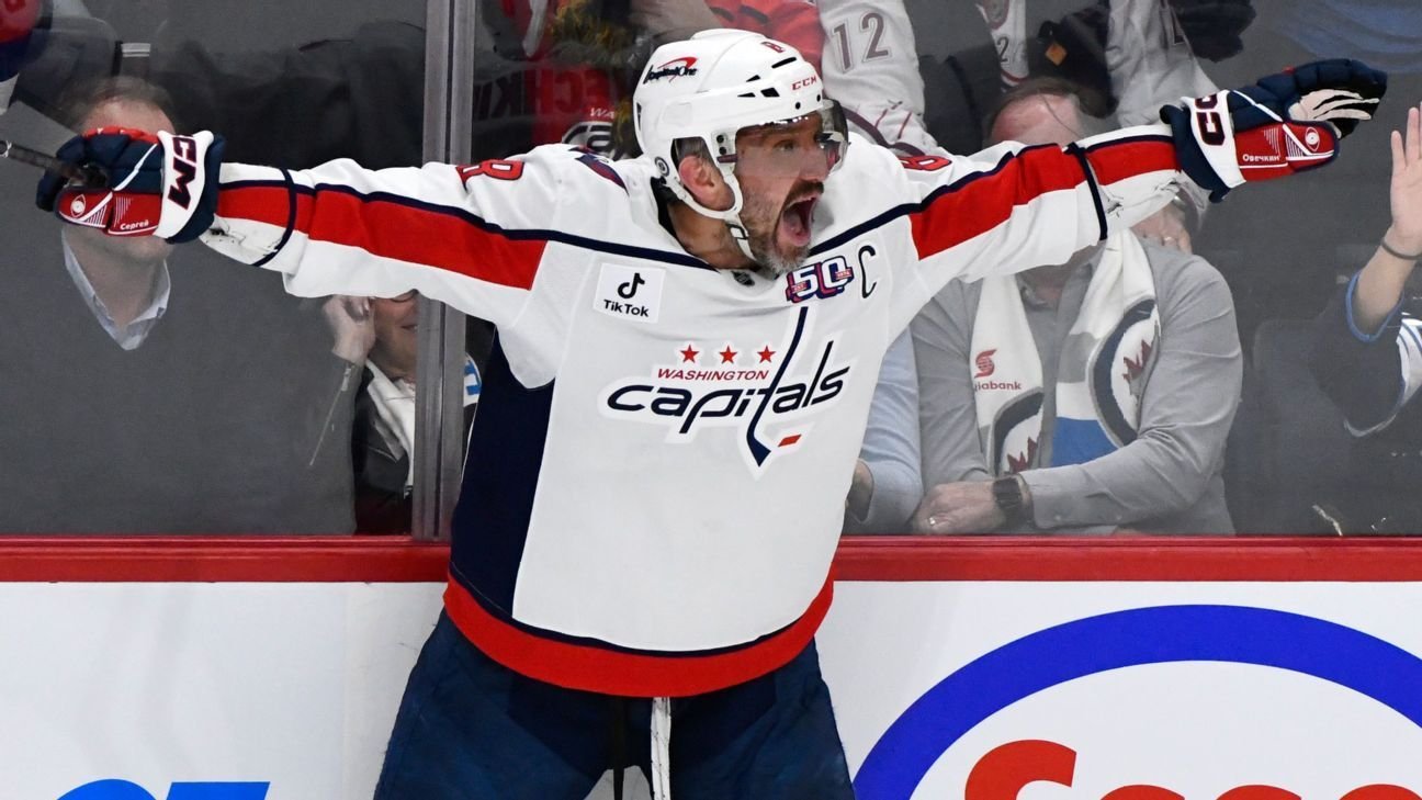 WINNIPEG, Manitoba — Alex Ovechkin scored the 889th goal of his career Tuesday night, and is now six goals away from breaking Wayne Gretzky’s NHL record.
