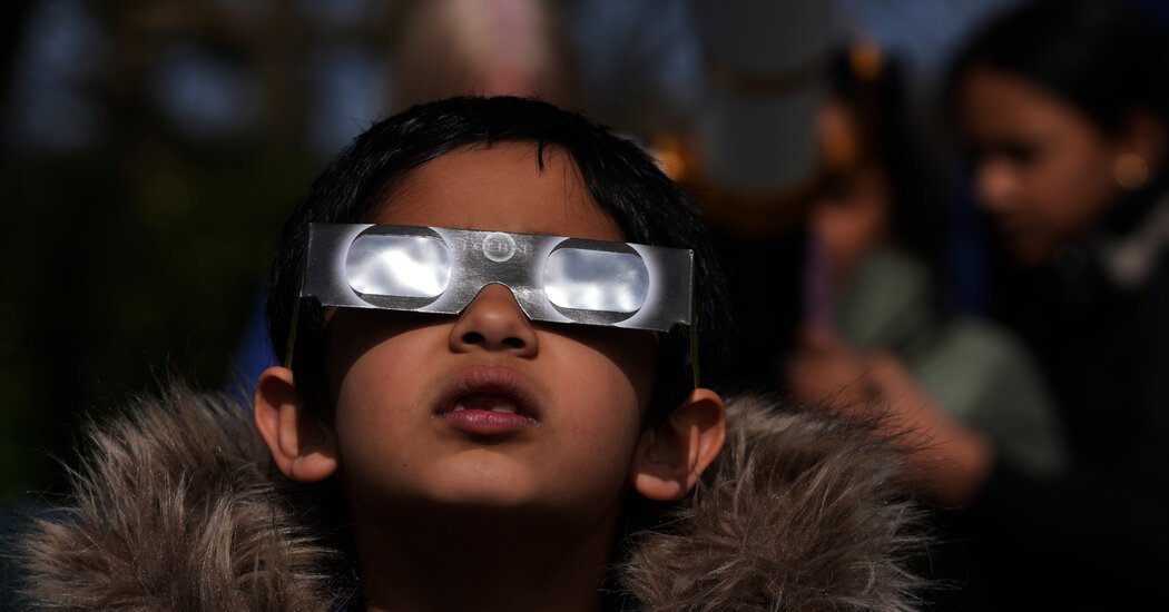 As the sun rose in the Northern Hemisphere on Saturday, the moon cut across Earth’s orbit and took a bite out of the sun.