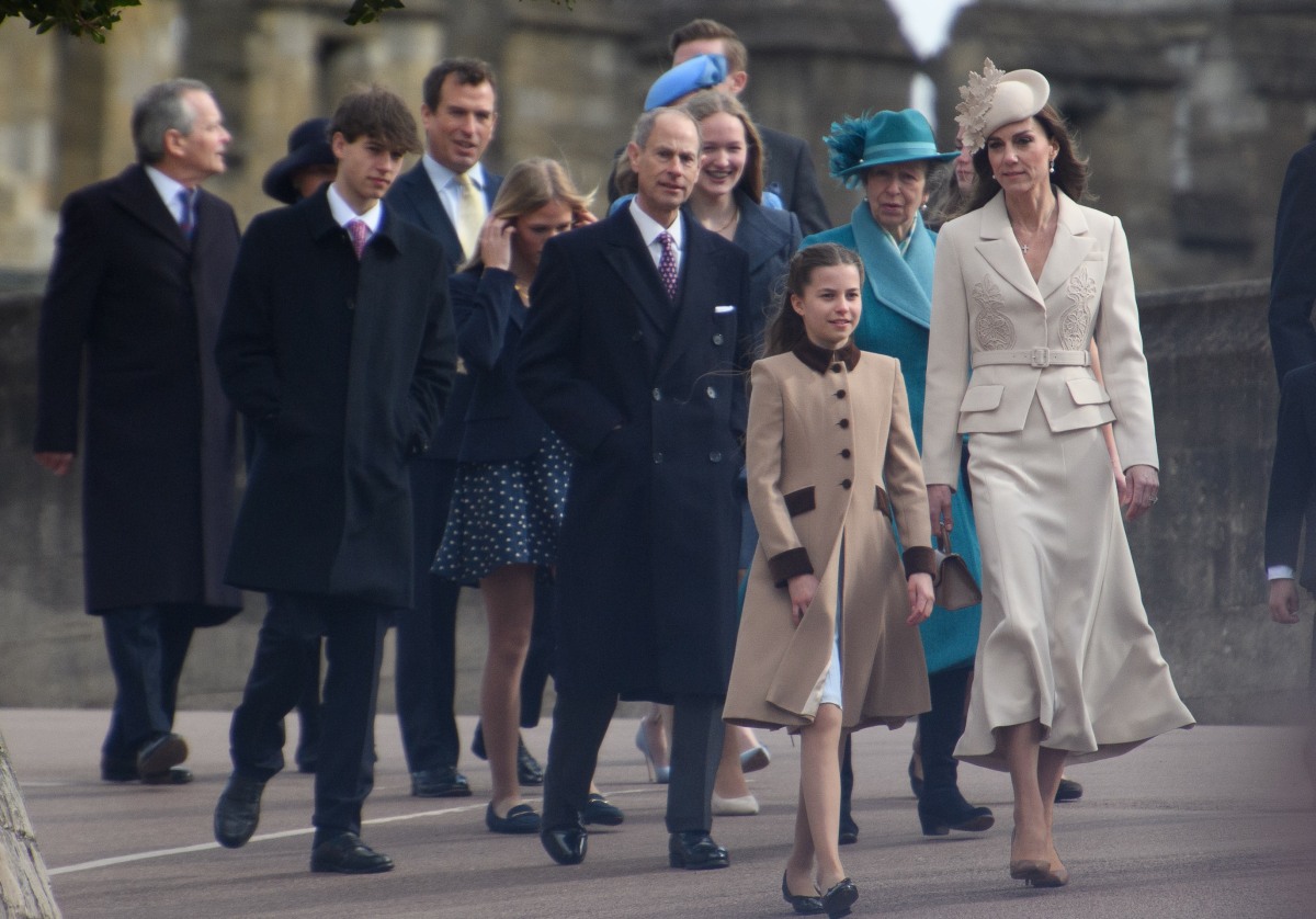 Some members of the British royal family attended their annual Easter church service in Windsor on Sunday. Prince Andrew, Sarah Ferguson, Princess Beatrice and Princess Eugenie did not attend, despite attending in previous years. Reportedly, Beatrice and Eugenie were “invited” but declined King Charles’s invitation, and after that announcement, Prince William tried to take credit for banning them and/or throwing a tantrum and threatening not to come if his cousins were invited. So who all was there? Princess Anne and Tim Laurence came out (they’re regulars at Easter services), and they brought Peter Phillips and his fiancee Harriet Sperling. Harriet brought her daughter from her first marriage as well. Interestingly, Prince Edward and his son James were there, but Sophie and Lady Louise were not?? It feels very… divorced-parents splitting up the major holidays. Hello Mag said that Sophie was scheduled to appear but she was “under the weather.” Hmm. And obviously, King Charles and Camilla were there. Between the struggling numbers for Easter and the empty barricades on Commonwealth Day, it’s certainly giving “irrelevant royals.”