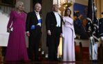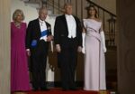 President Donald Trump and first lady Melania Trump pose for a photo with Britain’s King Charles III and Queen Camilla before a state dinner at the White House on Tuesday, April 28, 2026 in Washington, D.C. Charles spoke to a joint session of Congress earlier in the day, and attended several events with U.S. President Donald Trump.