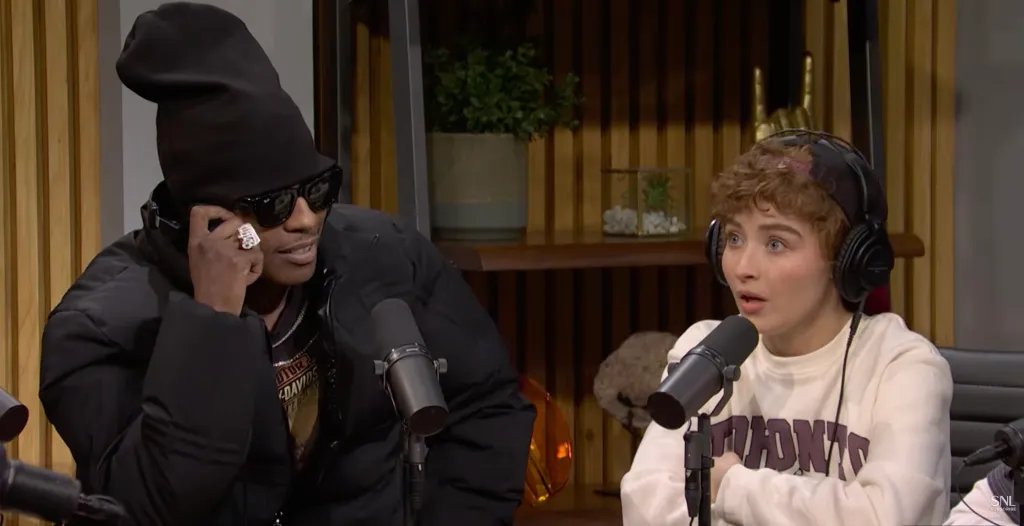 Like in the first edition of “Snack Homiez,” which featured James Austin Johnson as President Donald Trump, the followup also had a celebrity guest on the podcast. This time, it was the SNL episode’s musical guest A$AP Rocky.