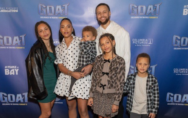 Stephen Curry attended the Oakland screening of Goat at the historic Grand Lake Theatre alongside his wife, Ayesha Curry, and their four children, Riley, Ryan, Canon and Caius.