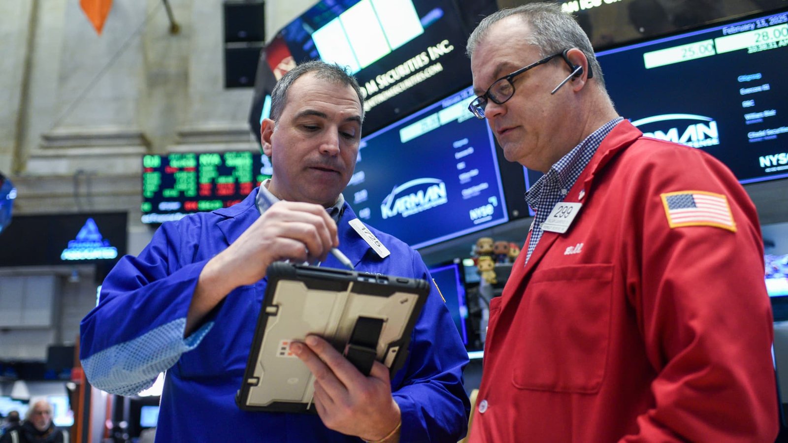 Traders work on the floor of the New York Stock Exchange on Feb. 13, 2025.