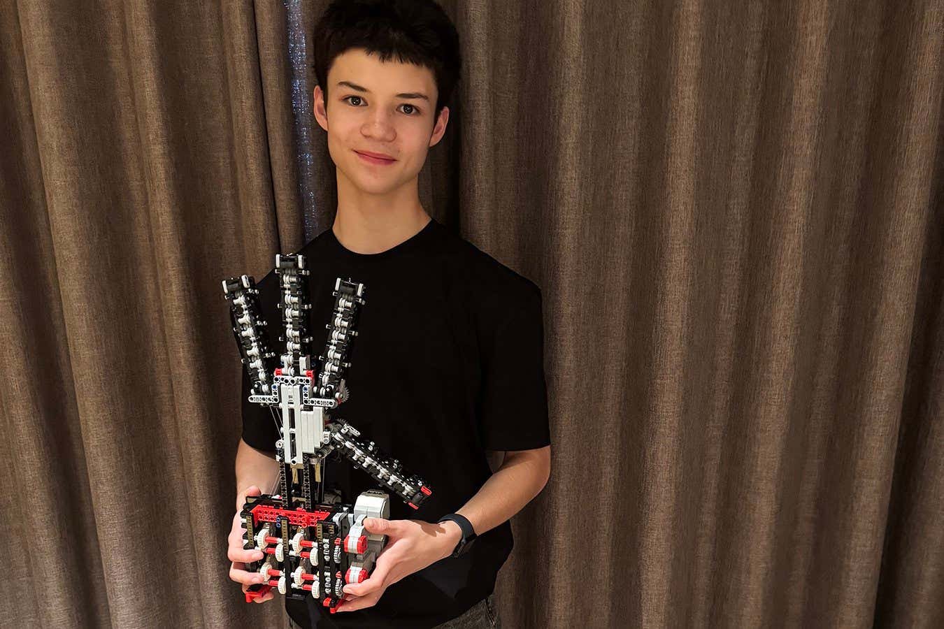 Teenager builds advanced robot hand entirely from Lego pieces