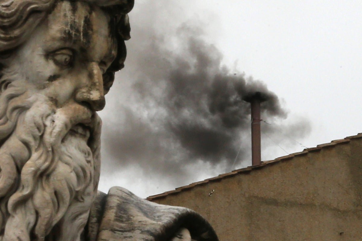 Black smoke billows from the chimney on the roof of the Sistine Chapel indicating that the College of Cardinals have failed to elect a new Pope on March 13, 2013 in Vatican City, Vatican.