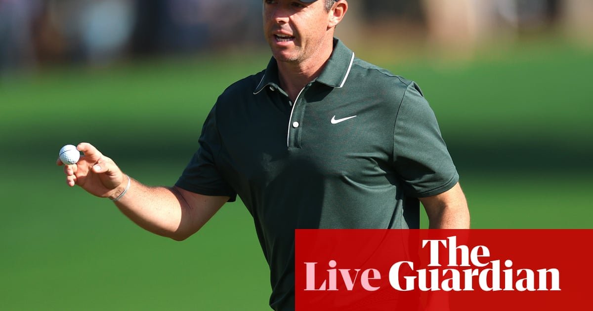 The morning marquee group is out. The new Masters champion Rory McIlroy, the defending champion and reigning Open champion Xander Schauffele, and the world number one Scottie Scheffler. Rory batters his drive furthest, but he’s in the rough down the right of the fairway. Scheffler a few yards behind him but in prime position. Schauffele in decent nick as well.