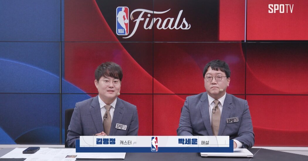 Mr. Kim, 42, has been a sportscaster with SPOTV, one of South Korea’s top sports channels, since 2012. He also does commentary for Champions League soccer, Moto GP, and mixed martial arts fighting. But he has a particular affection for the N.B.A., in part because of his name, Myung-jung, which is often shortened to “M.J.,” as was the name Michael Jordan. “It’s a special initial,” Mr. Kim explained. “I feel a lot of responsibility.”