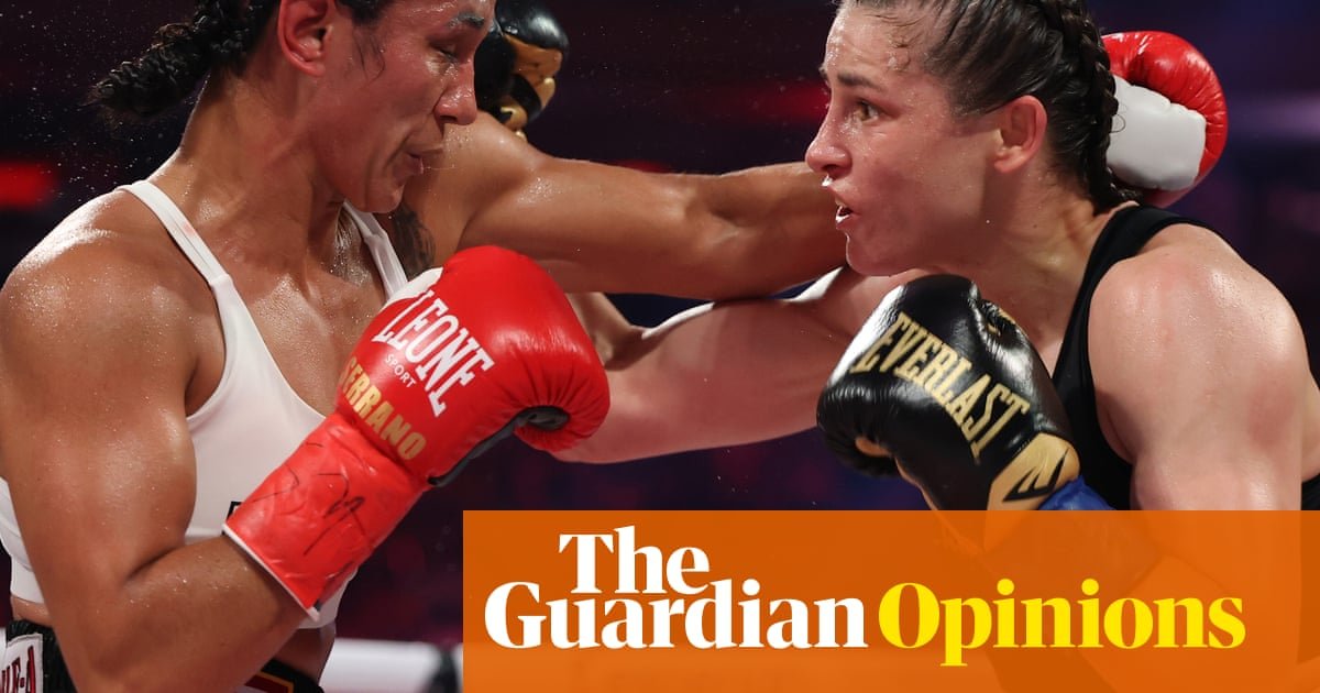 There are two salient pictures of the Katie Taylor–Amanda Serrano trilogy: Taylor walking to the ring on Friday night under the green, orange and white bars of light, her neck like a tree trunk, eyes fixed ahead with stoic grandeur as Even Though I Walk played overhead – and the image, hours earlier, of Yulihan Luna bloodied and bruised, standing beside a ring girl whose hoisted breasts had been shellacked in oil, smiling rigidly at a camera that wasn’t looking at the fighter.
