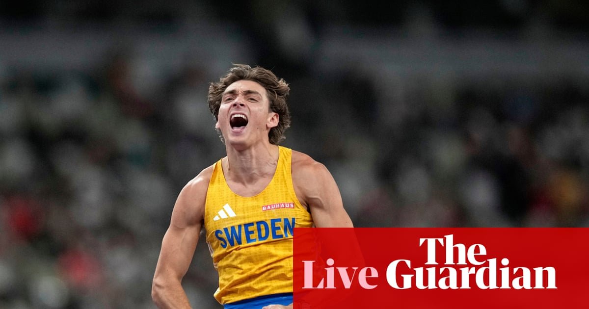 Men’s pole vault final: Duplantis cleared his opening height of 5.55m with ease, but has passed on the next height of 5.75m. His top competitors – Greece’s Emmanouil Karalis, the US’s Sam Kendricks, and Australia’s Kurtis Marschall – have all successfully made it over 5.75m.