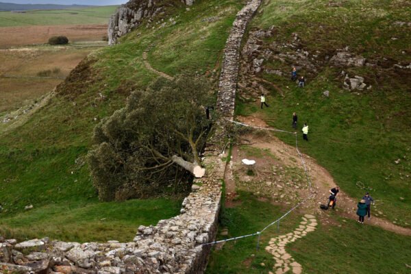 Two men used a chain saw to deliberately cut down the celebrated Sycamore Gap tree in the north of England in a “moronic mission” a year and a half ago, and the felling was filmed on a cellphone, a prosecutor in northeastern England said on Tuesday. The tree, a beloved landmark that stood by Hadrian’s…